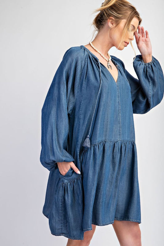 Easel Washed Denim Dress