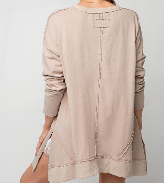 Apricot Exposed Seam V Neck Split Hem Tunic Top