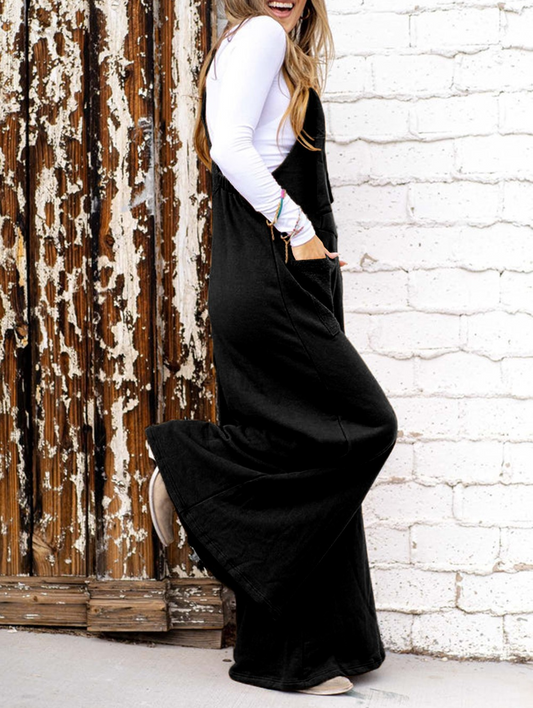 Black Knotted Straps Patch Pocket Wide Leg Jumpsuit