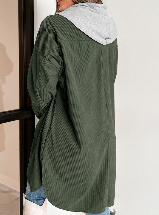 Jungle Green Oversized Corduroy Contrast Hooded Shacket